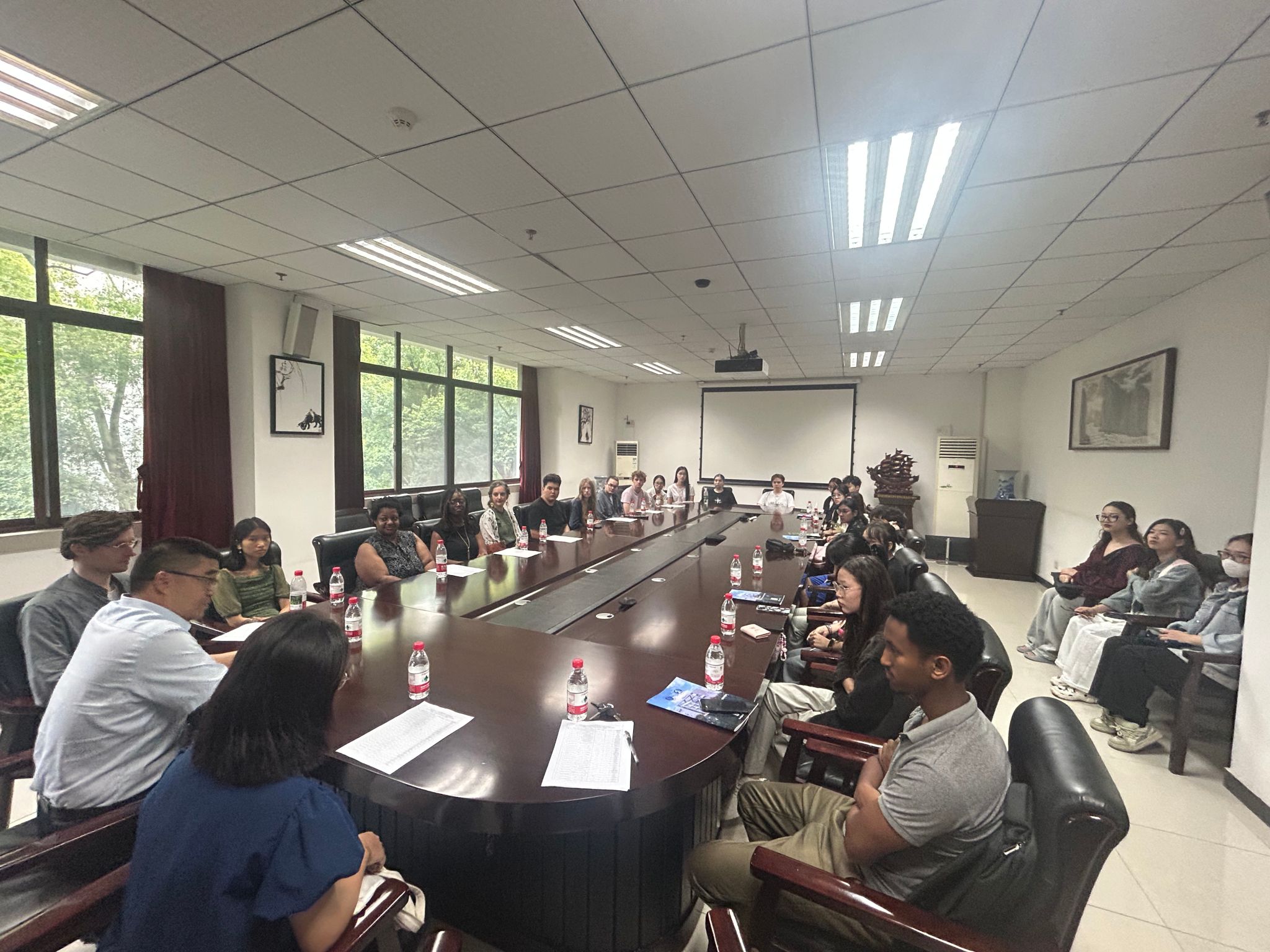 2025年9月12日,学院举行班级迎新会。学院党委书记严怡代表全院师生向留学生新生表示热烈欢迎和诚挚问候。她简要介绍了学院的发展历程、办学特色与专业优势,并鼓励同学们充分利用学院优质的多元文化环境和多语种学习资源,不断拓展国际视野,努力成长为知华友华的新时代国际化人才。副院长张俊就学业规划向新生作出说明,并提出具体要求和期望。他希望留学生能够尊重文化差异、遵守校规校纪,尽快适应新环境、融入学院大家庭。