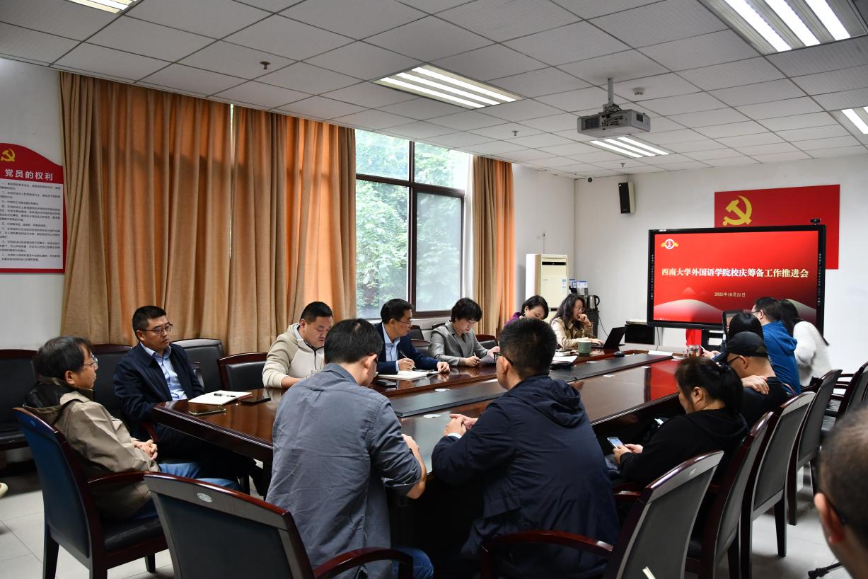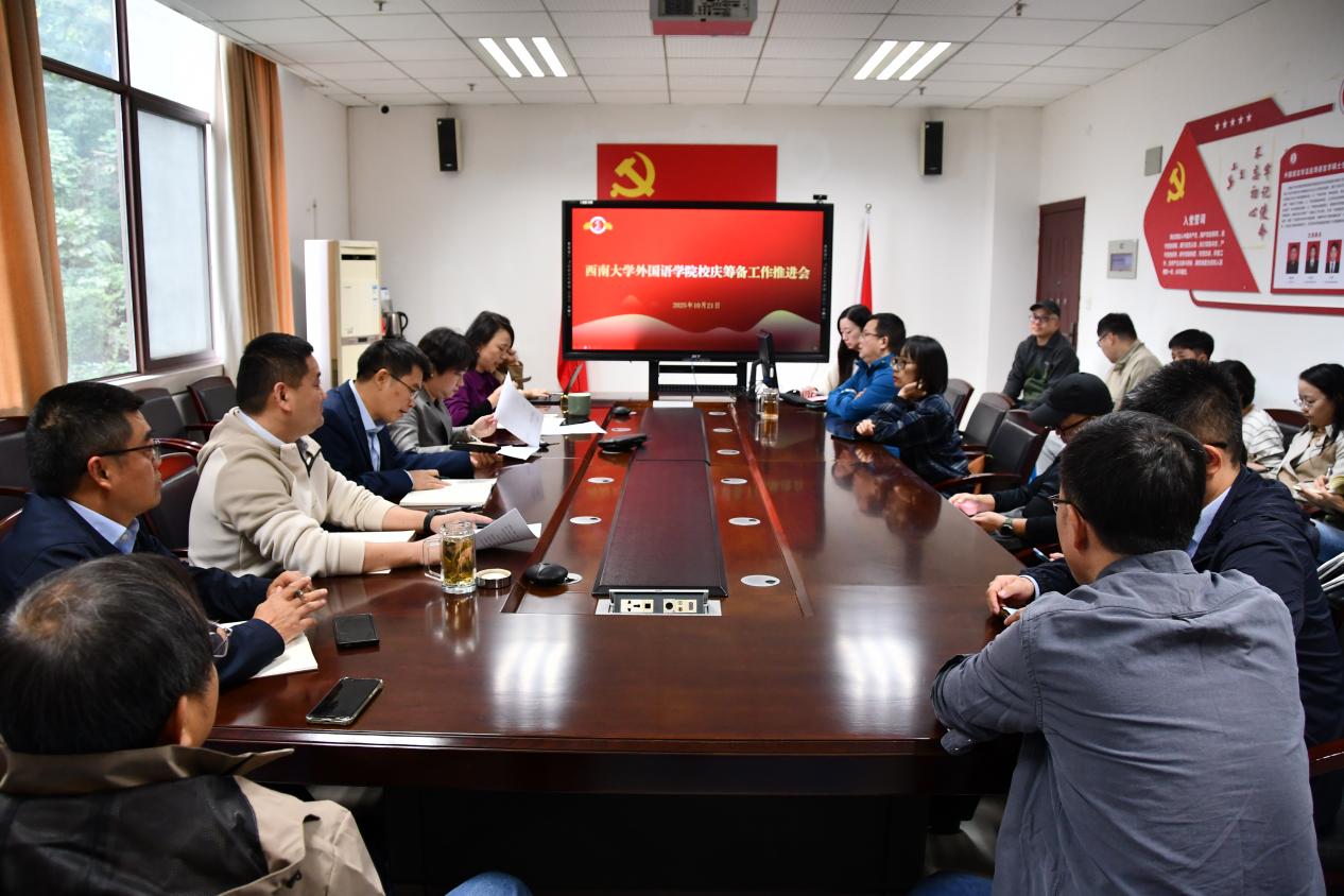 2025年10月21日下午,西南大学外国语学院在307会议室召开校庆筹备工作推进会,全面部署学院迎接学校120周年校庆相关工作。会议由副处级组织员石莹华主持,学院党政领导、各系部负责人、全体辅导员及相关工作人员参加会议。