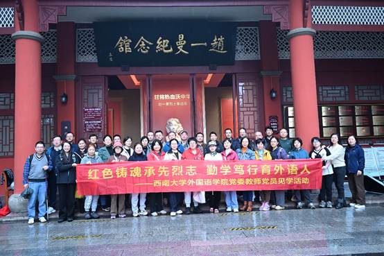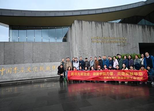 2025年11月1日至2日,西南大学外国语学院组织党员教师及工会会员赴宜宾,成功举办了以“红色铸魂承先烈志 勤学笃行育外语人”及“踏寻先辈足迹,凝聚学院力量,共谱发展华章”为主题的红色见学与工会活动。此次活动不仅是一次对历史的回溯,更是一场凝聚力量、激发使命的精神之旅。