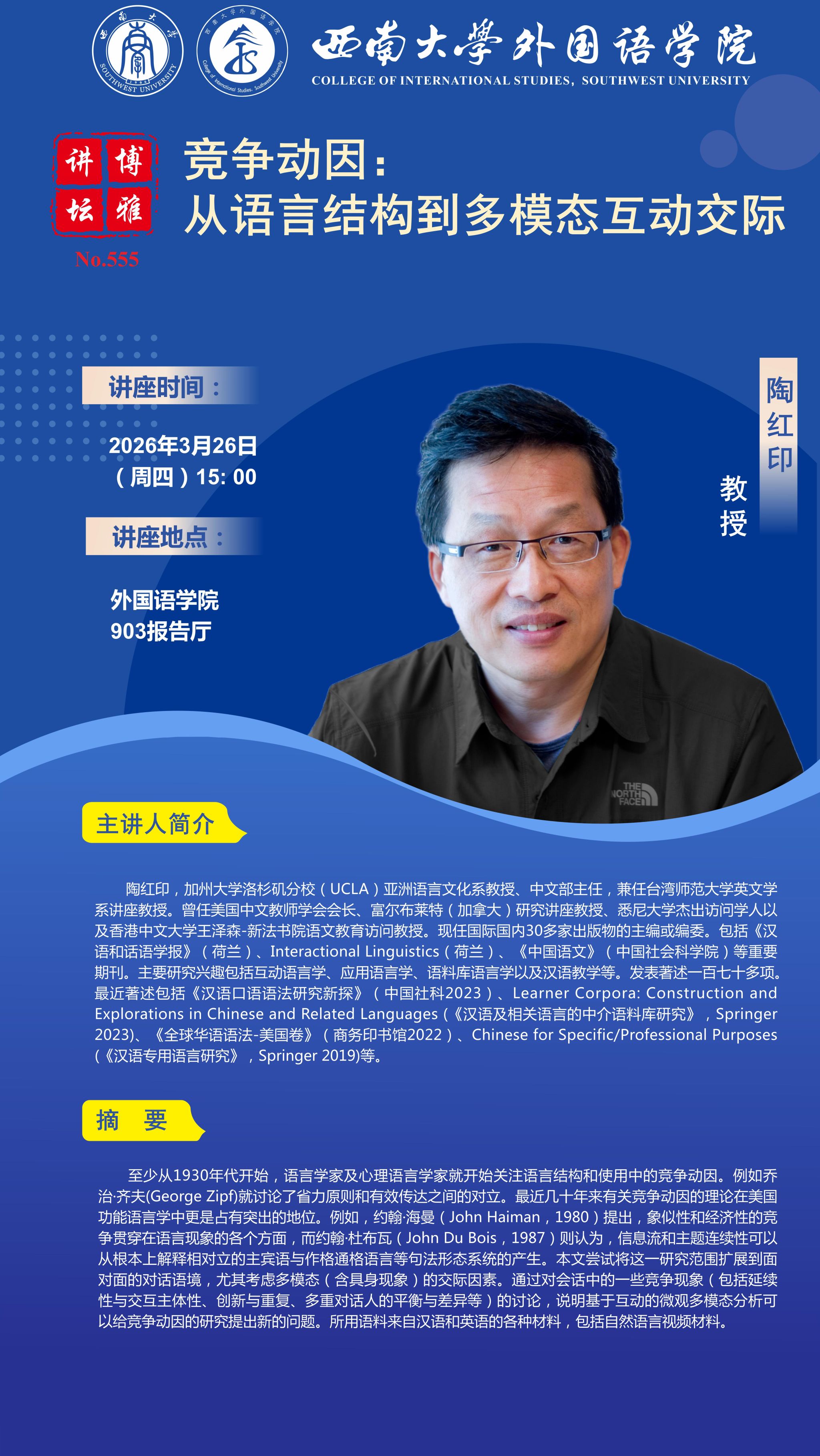 博雅讲坛 555:竞争动因:从语言结构到多模态互动交际