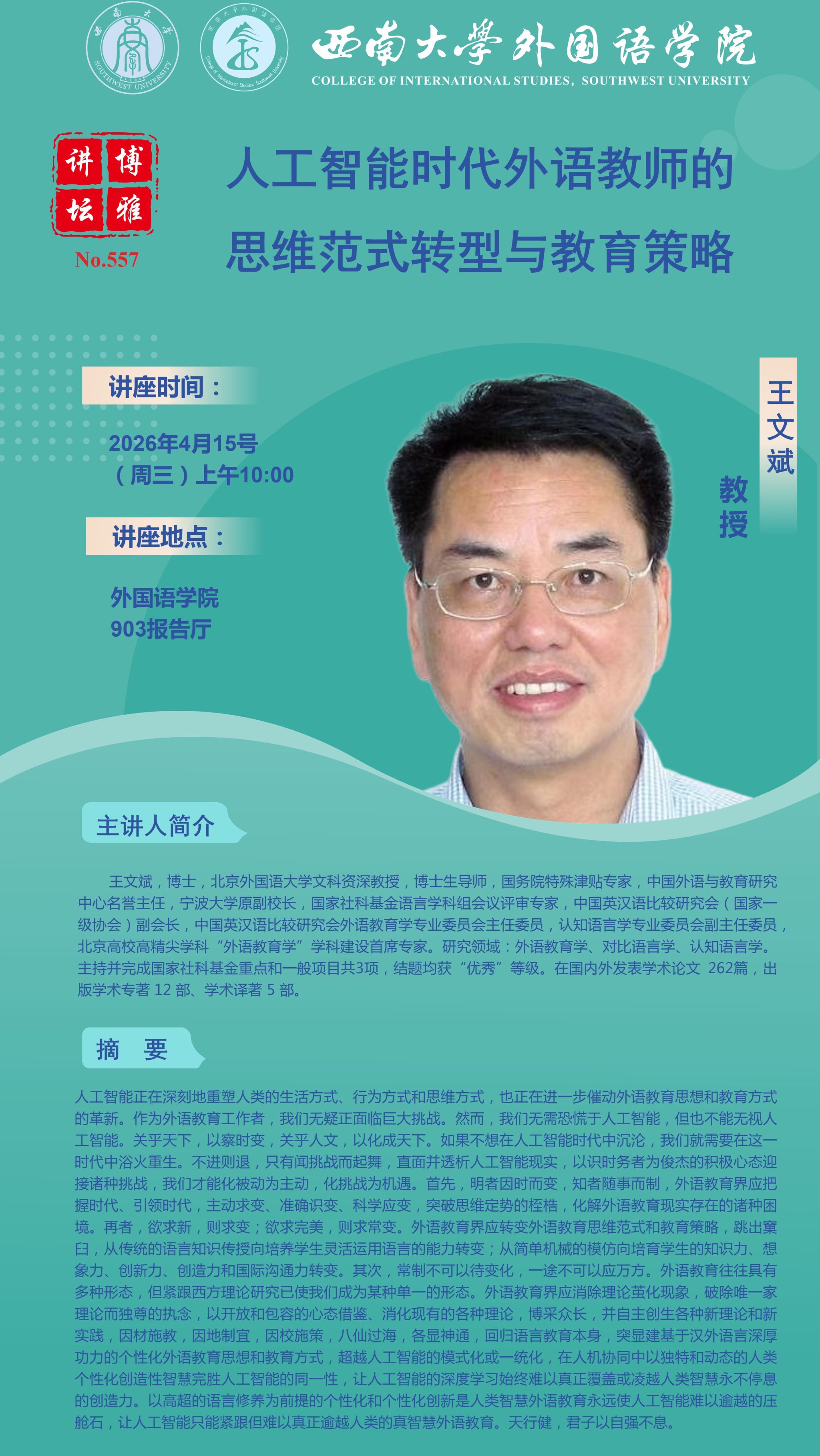 博雅讲坛 557:人工智能时代外语教师的思维范式转型与教育策略
